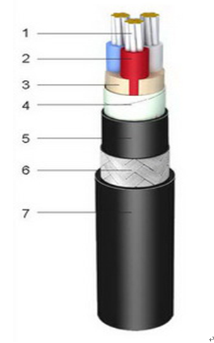 交聯(lián)聚乙烯絕緣聚烴烯內(nèi)護套鍍鋅鋼絲編織鎧裝聚烴烯外護套船用電力電纜 |