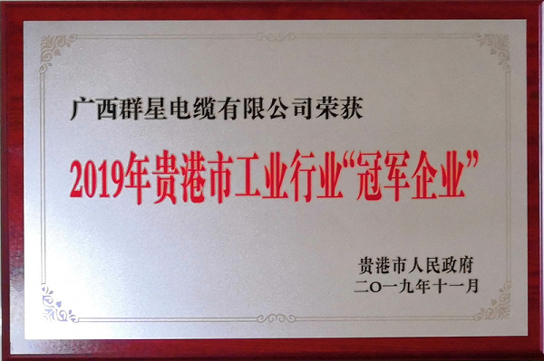 熱烈祝賀廣西群星電纜有限公司榮獲貴港市工業(yè)行業(yè)“冠軍企業(yè)”稱號。