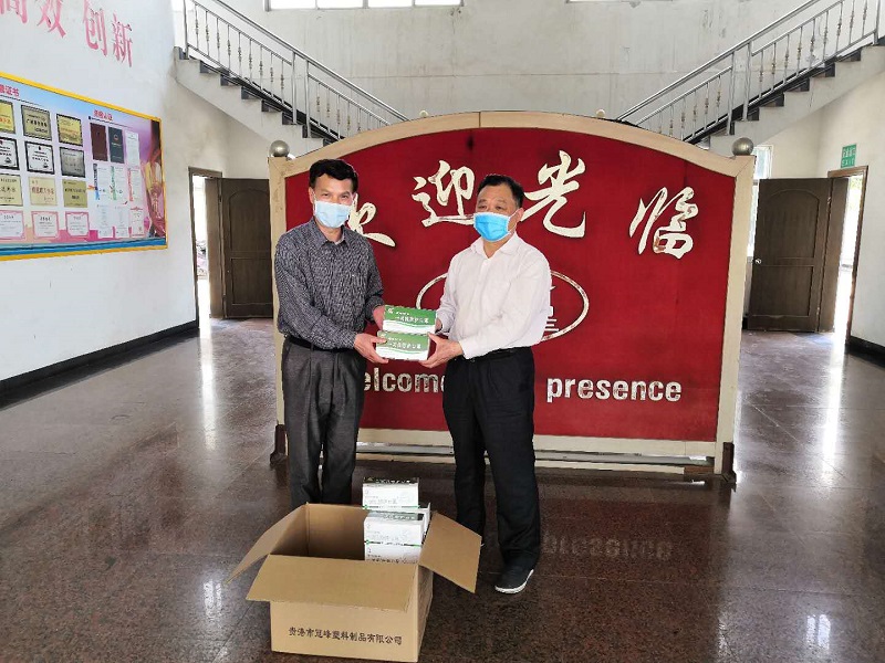 2020年4月29日上午,港北區(qū)總工會黨組書記黃子坤(右),到廣西群星電纜有限公司了解企業(yè)復(fù)工復(fù)產(chǎn)情況和在復(fù)工復(fù)產(chǎn)中存在的問題,并向廣西群星電纜有限公司贈送1000只一次性口罩,企業(yè)工會主席劉毓棠(左)接受捐贈。